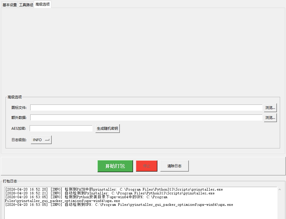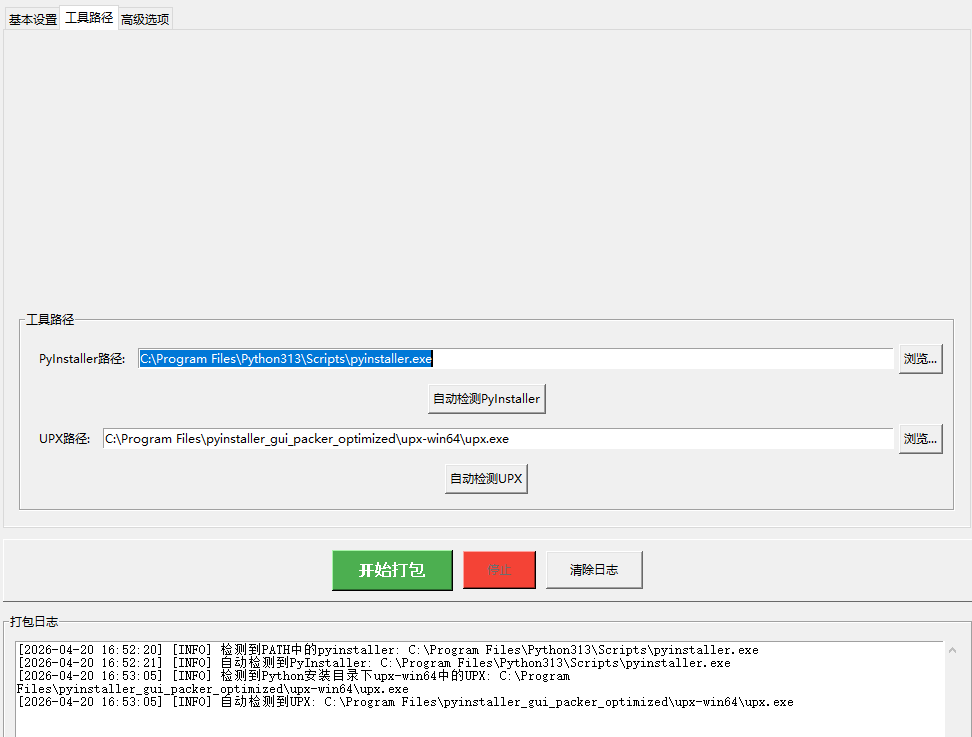 • 自动工具检测:自动检测PyInstaller和UPX路径,减少配置步骤
