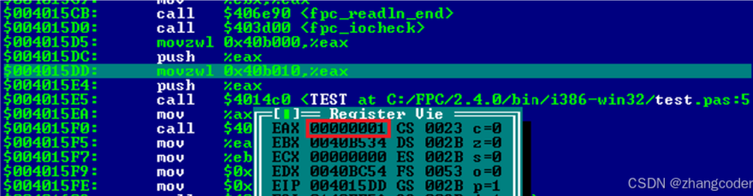 注: pxor是逻辑异或,根据Intel® 64 and IA-32 Architectures Software Developer’s Manual的描述,PXOR xmm1, xmm2/m128类别,是Bitwise XOR of xmm2/m128 and xmm1,图中的pxor xmm1,xmm1是将xmm1和xmm1自身进行XOR运算,将结果存储到xmm1中,即将xmm1寄存器清零