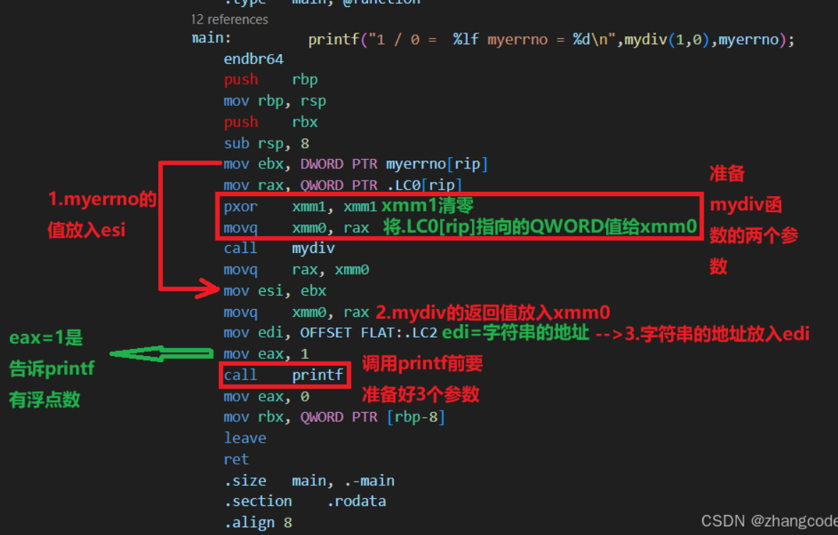 由于myerrno的值可以通过DWORD PTR myerrno[rip]访问到,要传入mydiv修改后的myerrno的值,那么可以这样做: