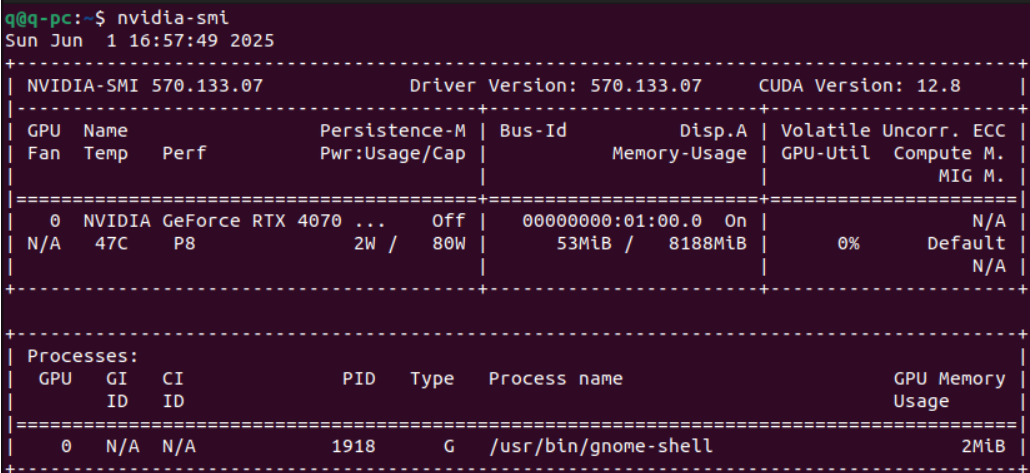 先查看驱动能支持的CUDA最高版本,这里显示可支持到12.8。