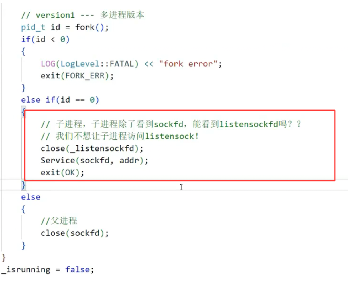 子进程不需要监听套接字listen_sock,要主动关闭(避免文件描述符泄漏);