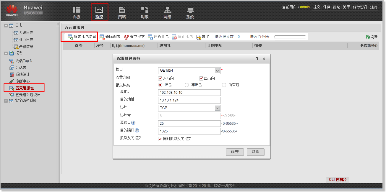 华为防火墙五元组抓包