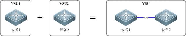 如下图所示,两个各自稳定运行的VSU,如果它们的Domain ID相同,则可以通过在两个VSU之间增加VSL链接来使其合并成为一个VSU,这个过程称为VSU合并。