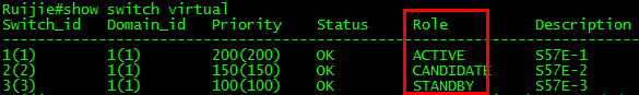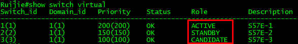 S57E-3(config-vs-domain)# switch 3 priority 150 ------>配置switch id的优先级