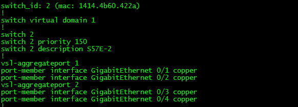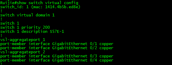 S57E-1(config)# vsl-aggregateport 2 ------>一个vsl-aggregateport对应一台设备,不要把对应不同设备的接口都放到同一个vsl-aggregateport里面