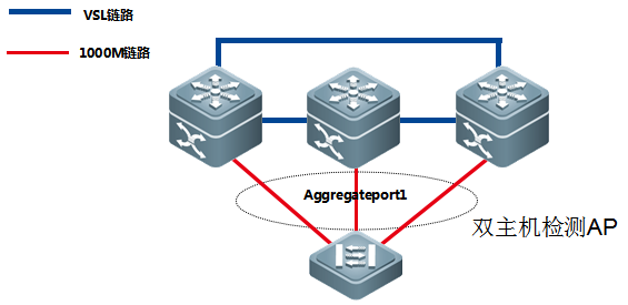 在多台VSU要防止完全防止双主机,最好的方式采用聚合检测,这样不用像BFD那样,需要多条BFD线路两两互联。聚合检测只需要n条线路即可。但是前提是下联的接入交换机是锐捷设备,这样保证锐捷的私有报文可以正常转发。