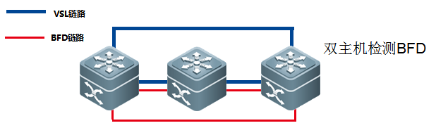 特殊情况如图:3台设备做VSU,如果要完全防止双主机问题,需要2+1=3条的BFD线路