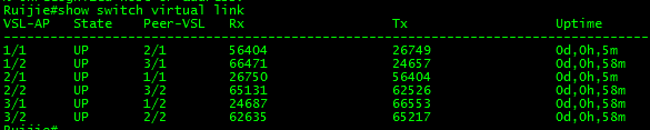 Ruijie(config)#vsl-aggregateport 1/1 ---->VSU模式下需要二维模式 前面1 是switch id,后面的1是vsl-ag的接口号